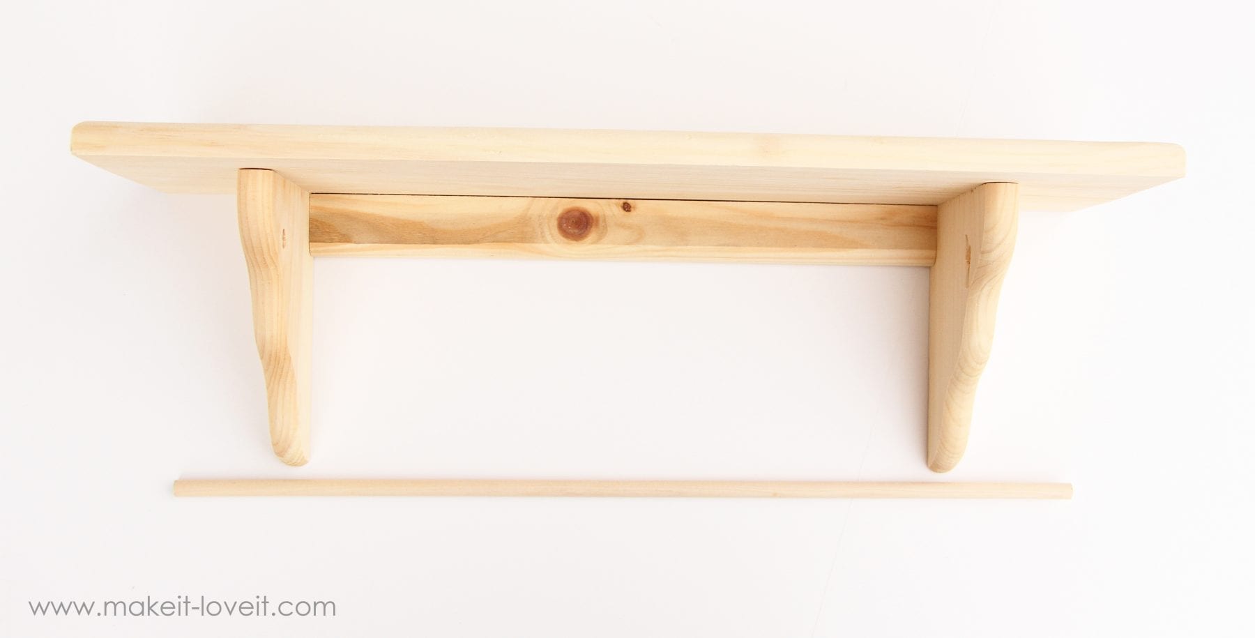 First, I cut my dowel to be slightly shorter than the width of the shelf.